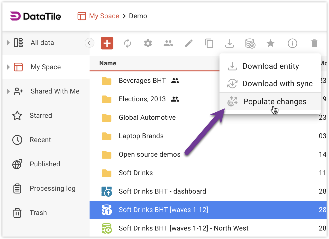 Click on the "Populate changes" option in the dropdown menu.