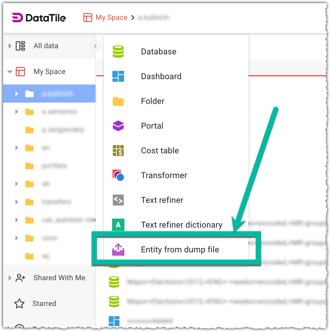 Entity from dump file.Select the dump file from your disk.