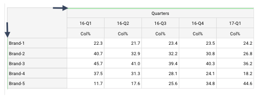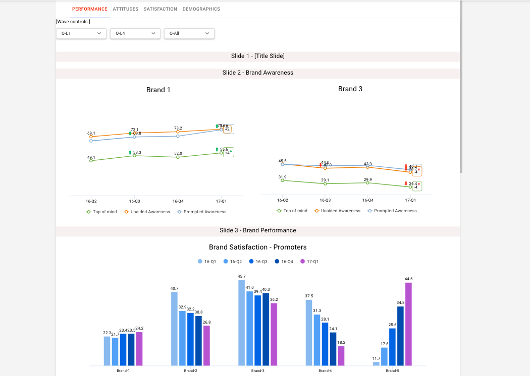 By auto-synching the variables, any changes or additions to a variable, such as including a new brand in a questionnaire, will be automatically updated and synchronized across all charts.