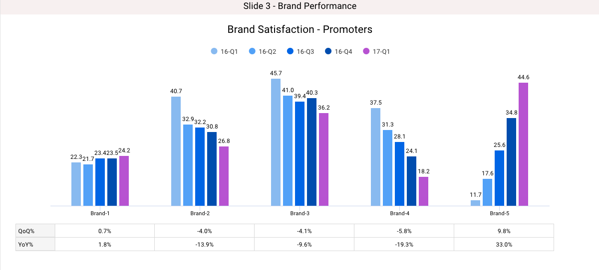 It is useful to build tables that are linked to your charts, tracking yearly or quarterly changes. This simple process can vastly enhance the insights in your report. Below is an example of the output.