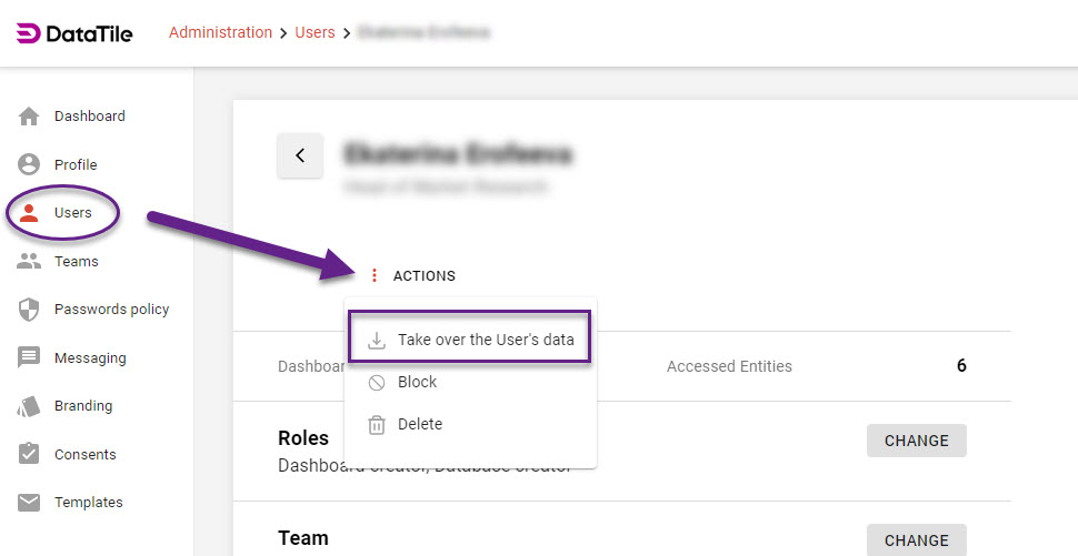 When a team member departs or switches roles, there might be a need to transfer their data to another owner.